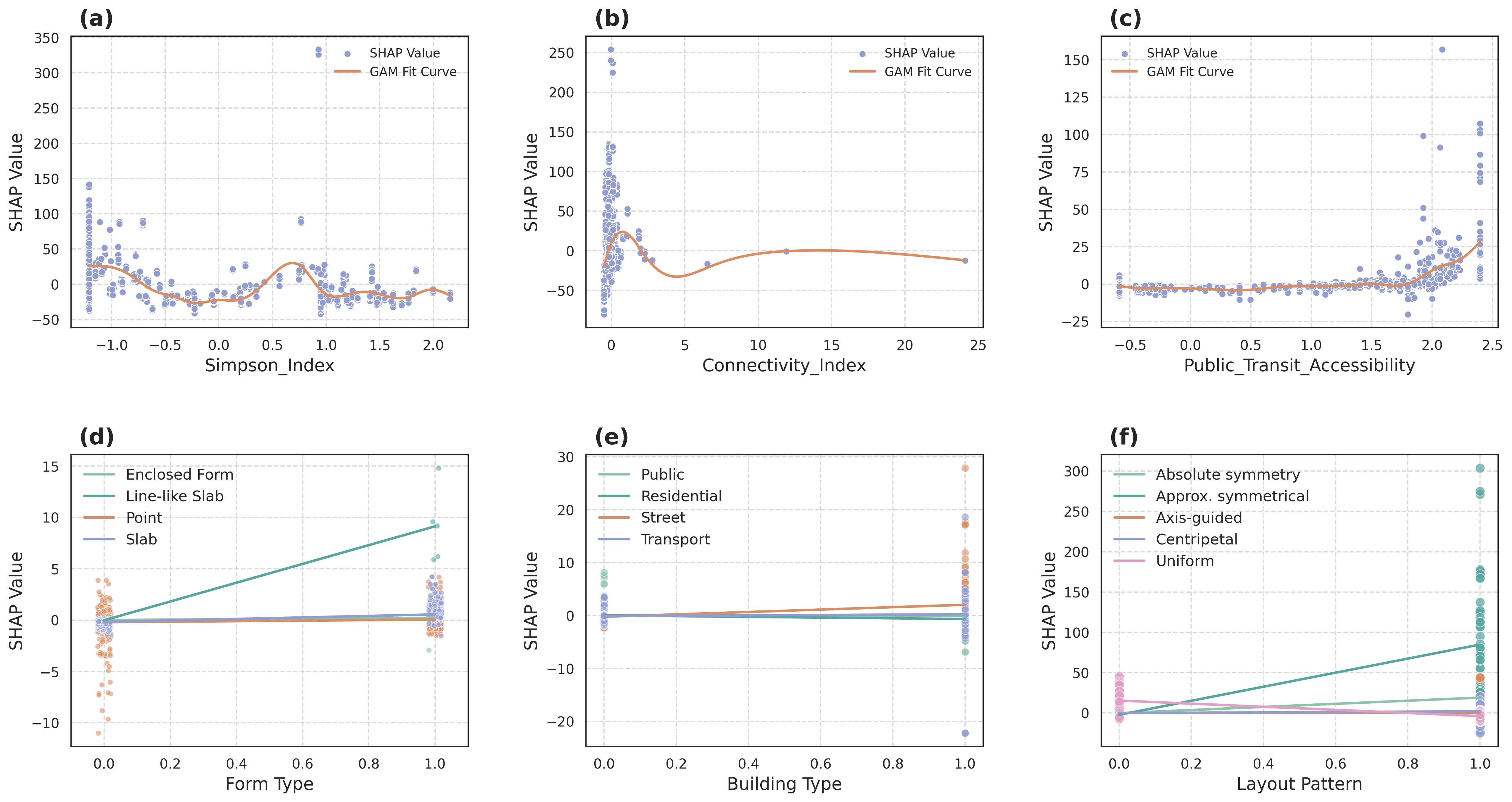 Open and visually connected spatial forms—such as line-like slabs and symmetrical layouts—tend to evoke more positive emotional responses. In contrast, enclosed, mono-functional, or overly uniform configurations, like transport buildings or enclosed blocks, may limit emotional stimulation and reduce perceived vibrancy.